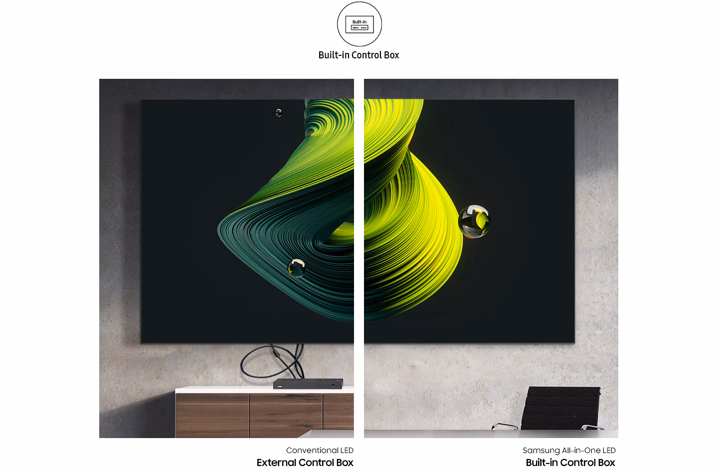 Descubre una auténtica pantalla LED todo en uno. Experimenta una instalación más sencilla que nunca con la exclusiva tecnología Quick Build de Samsung. Solo toma dos horas instalar una pantalla gigante en tu espacio. Solo tienes que disfrutar de su increíble rendimiento. Esta es la promesa de Samsung de un todo en uno.