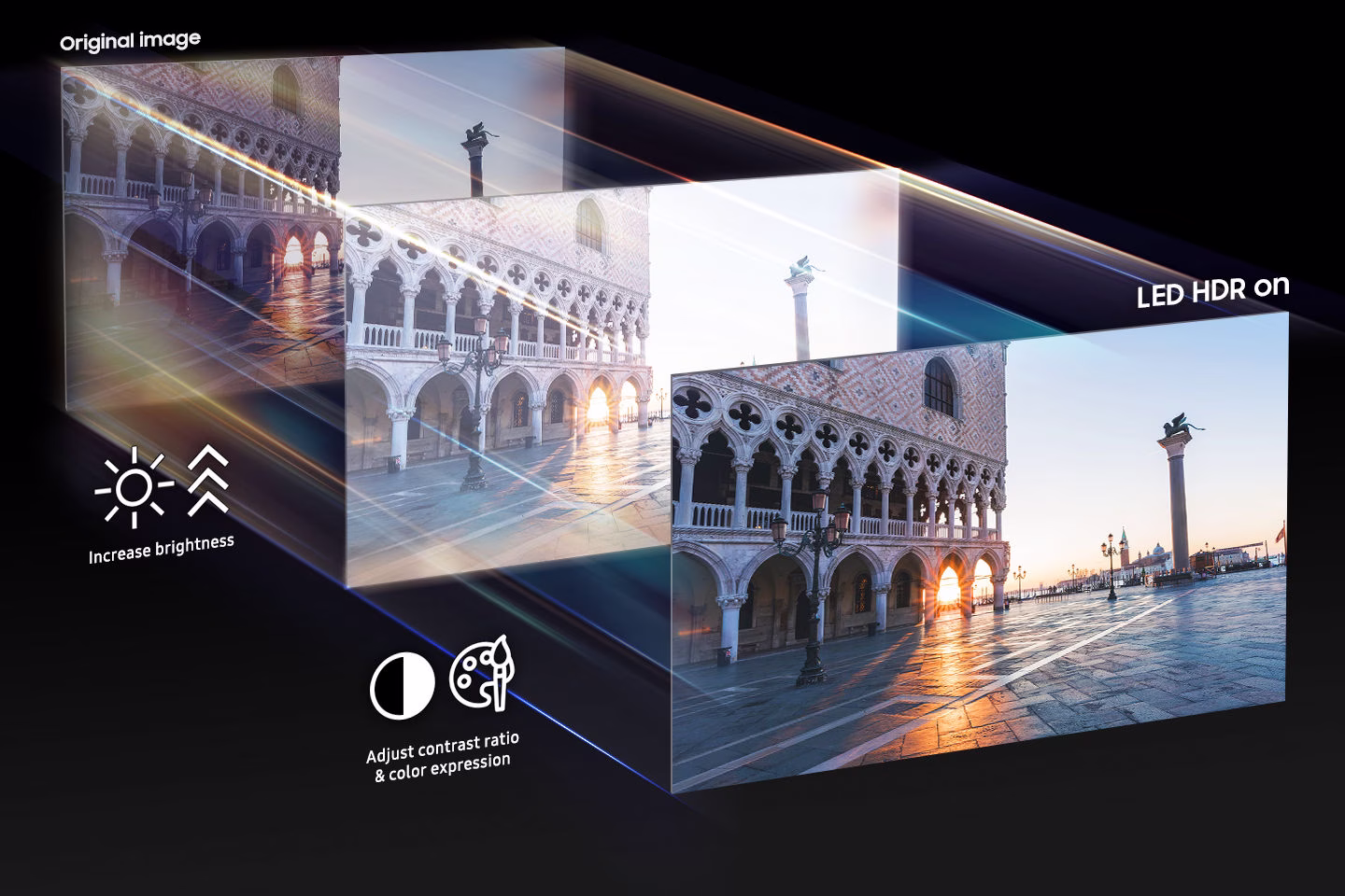 LED HDR convierte cualquier contenido a nivel HDR sin necesidad de metadatos especiales. La tecnología Dynamic Peaking de Samsung analiza el contenido en tiempo real y gestiona el consumo de energía, creando así contenido brillante que destaca en cualquier fondo.