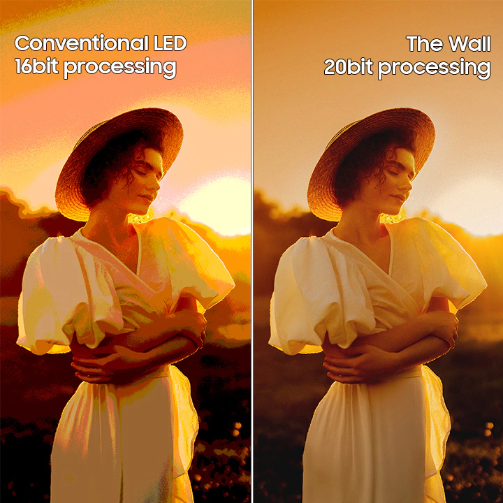 La serie Wall M cuenta con un procesamiento de 20 bits para presentar un mapeo de color con una precisión impecable. La profundidad de bits más profunda en escala de grises baja también eleva los tonos suaves y naturales. *Las imágenes presentadas son solo para comprensión general del cliente. El rendimiento real puede variar.